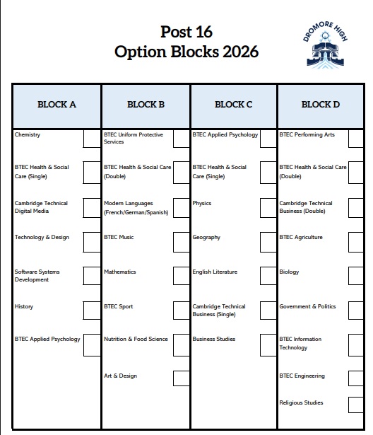 CLICK HERE – 2026 – POST 16 OPTION BLOCK SHEET
